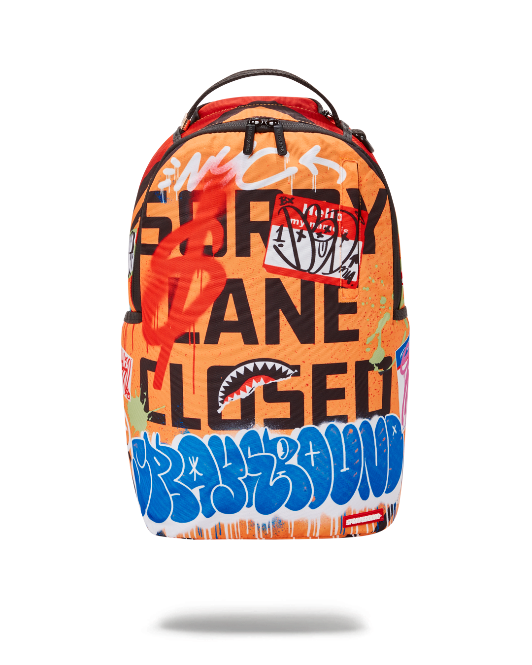Dimensions: 18' x 6' x 11.5' • Front zipper pocket • Side pockets • Zippered Stash pocket • Separate velour sunglass compartment • Ergonomic mesh back padding • Adjustable Straps for custom sizing • Green zippers with metal hardware • Metal 'Sprayground Authentic' badge • Slide through back sleeve connects to carry on luggage to free your hands